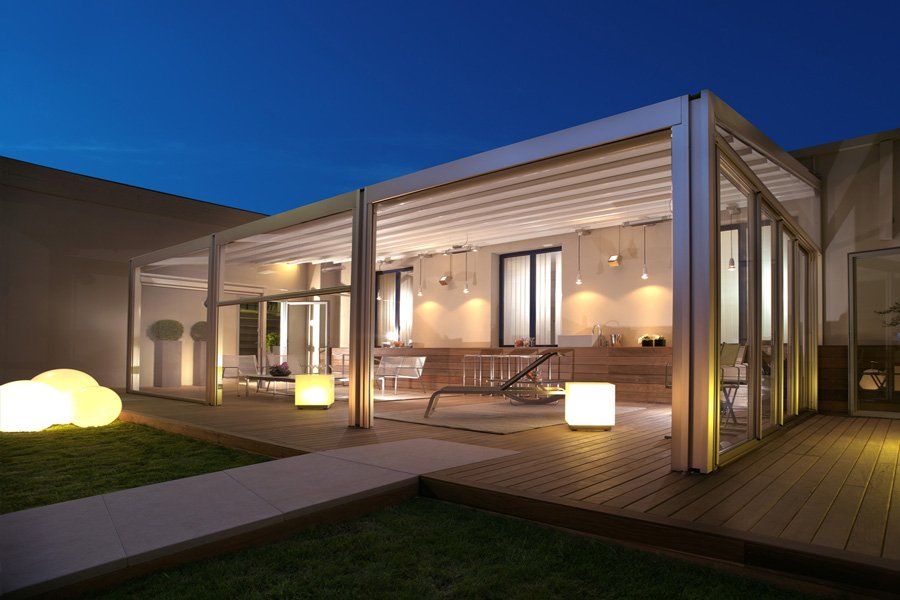 La pergotenda può essere arricchita con diverse automazioni meccaniche ed elettroniche, illuminazione e chiusure laterali che la rendono utilizzabile in qualsiasi stagione.