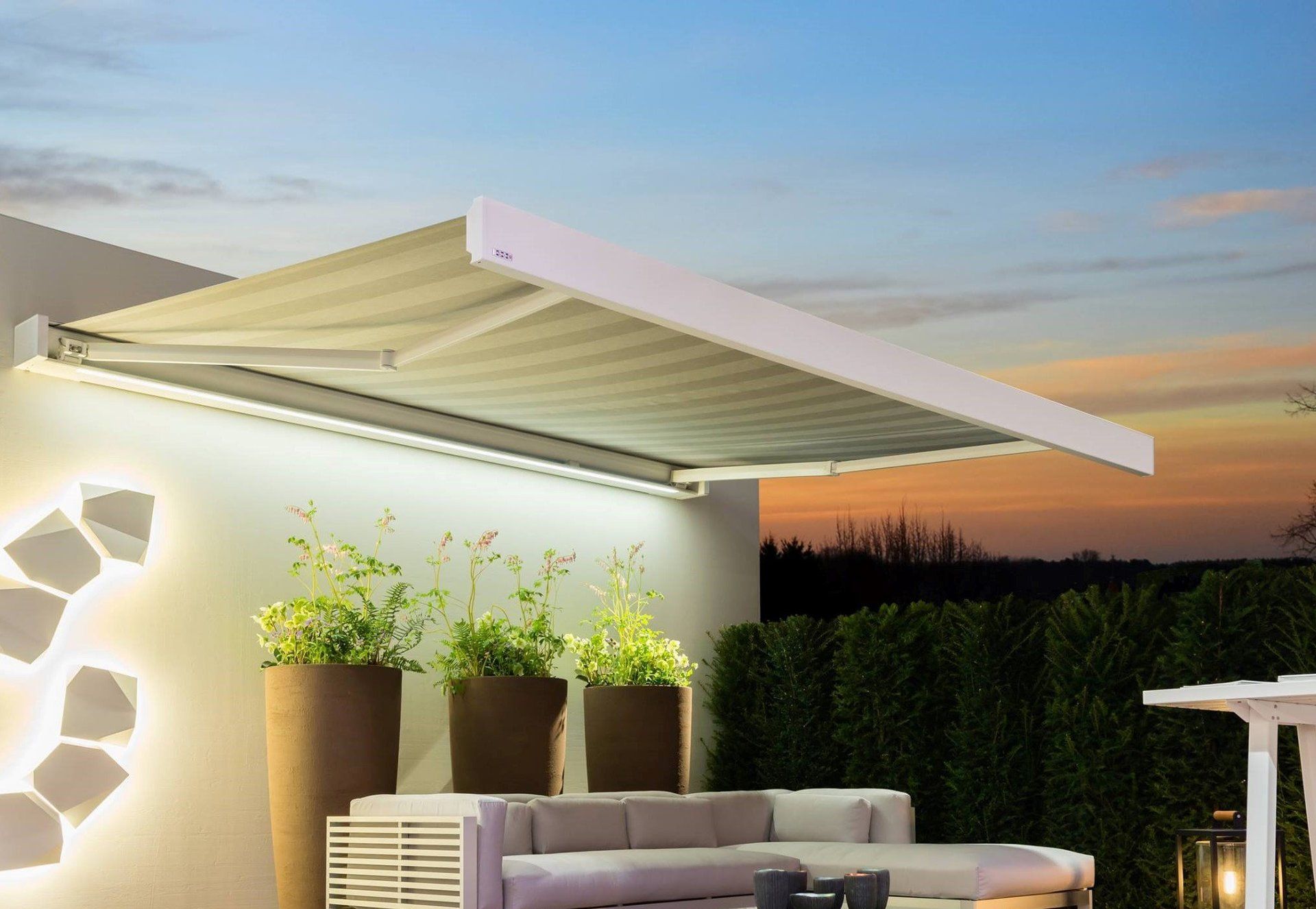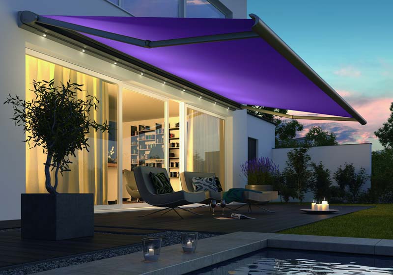 Gli impianti elettrici vengono secondo richiesta forniti da noi. La tenda a bracci può essere confezionata con tessuto o PVC.